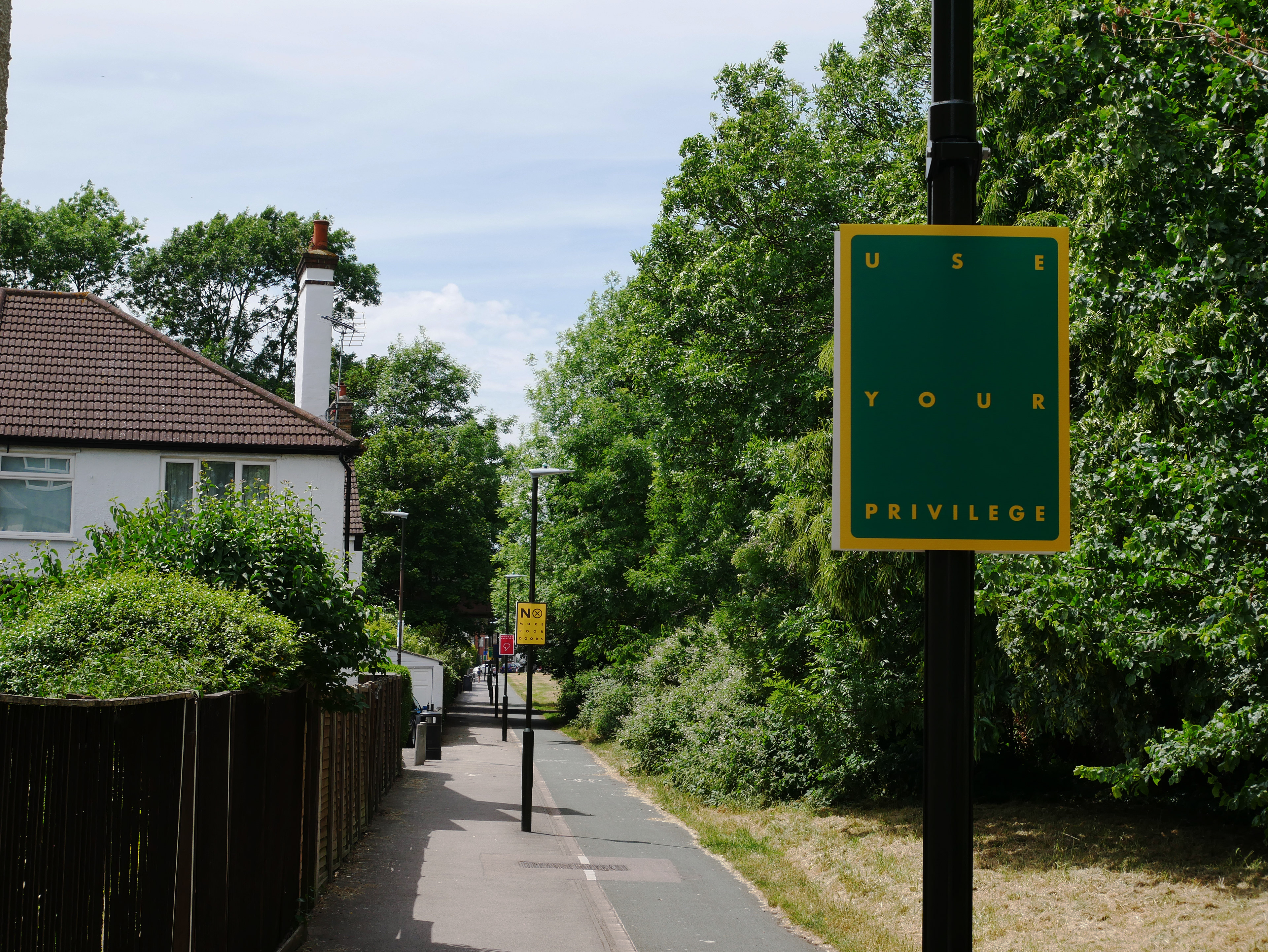 Attention is a public installation of 42 custom-made street signs. It shows texts from a collection of found graffiti documented for several years (2011-2019), conveying fragments of messages, ideas, and narratives coming from the UK, Europe, and North Africa. The work functioned as a spatial intervention that created a chance encounter between the signs and the people using this walking path. Part of ongoing works exploring found marks, public spaces, and collective experiences.